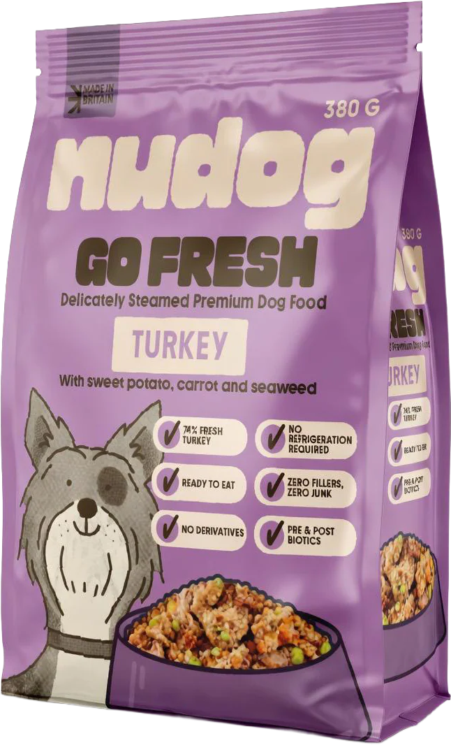 Go Fresh is a convenient fresh dog food that requires no freezing or refrigeration. Each pouch is gently steamed to lock in all the natural flavours, nutrients, and goodness, delivering a wholesome meal your dog will love.